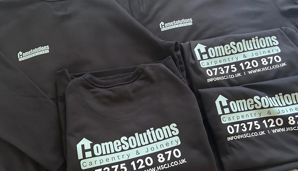 We supplied branded workwear for Home Solutions Carpentry & Joinery, including custom t-shirts and jumpers tailored for their small team. Designed for comfort, durability, and a polished look, the garments help reinforce their professional image on every job. Practical and on-brand, the perfect fit for skilled hands and sharp presentation.